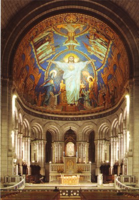 This white castle commissioned by the French government in 1873 symbolized confidence for the people and was finally finished around WWI. In 1922 Luc-Olivier Merson created an inside master piece which sits above the choir. Christ in Majesty is a mosaic display of Christ with a golden heart and outstretched arms. Christ is accompanied by none other than his mother, the Virgin Mary and yes, Joan of Arc!